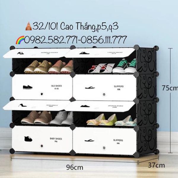 Kệ tủ giày nhựa lắp ghép 8 ô 2 cột 4 tầng chắc chắnKệ tủ giày nhựa lắp ghép 8 ô 2 cột 4 tầng chắc chắn. Mỗi ngăn để đc 2 đôi người lớn. Hàng coa sẵn