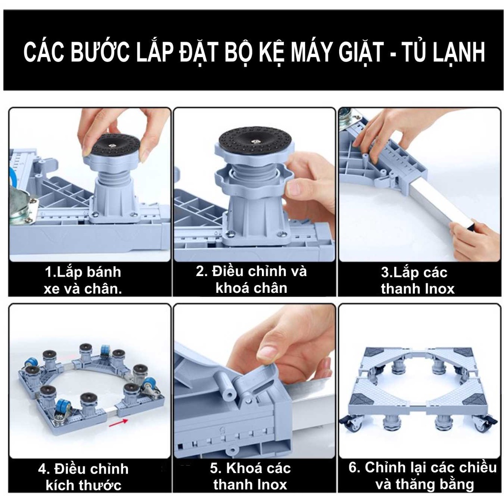 Giới thiệu Kệ tủ lạnh máy giặt cao cấp - 4 bánh xe đôi, 4 chân cố định.