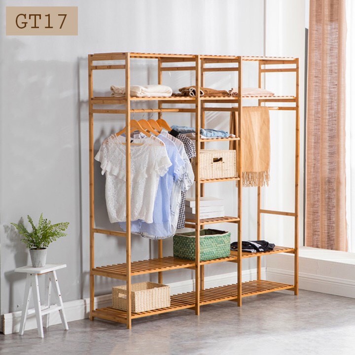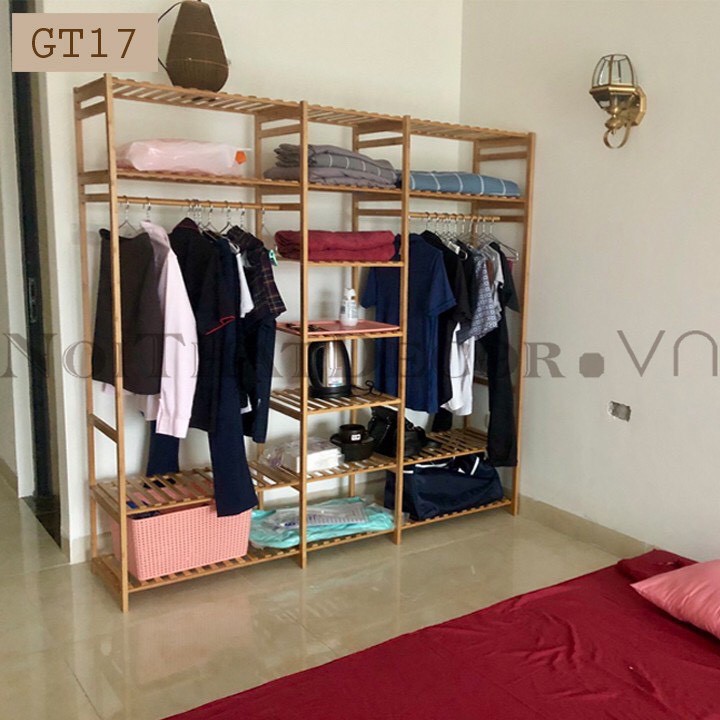 CÔNG DỤNG:Kệ/Tủ Treo Quần Áo 3 Khoang Gỗ Đa Năng