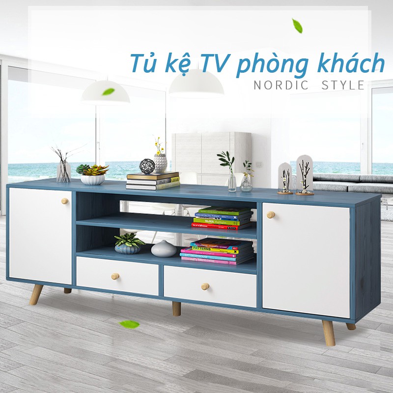 Kệ Tv phong cách Bắc Âu kệ TV phòng khách hiện đại đơn giảnBề mặt trên rộng, hai cánh tủ lớn hai bên, 1 ngăn kéo, thêm 2 tầng thoáng, không gian tích trữ lớn
