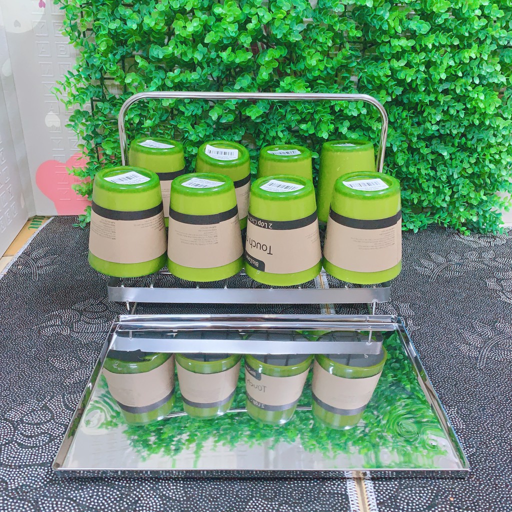 Giá treo cốc có 8 cốc.Cốc ngắn cốc cao đều treo được.