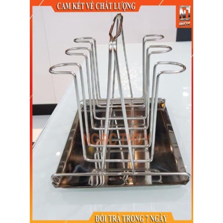 Kệ úp cốc ly inox cao cấp có khay hứng nước tiện dụng (loại 6 cốc)