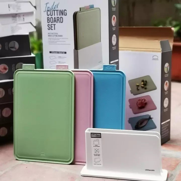 Nhà cửa & Đời sống > Dụng cụ nhà bếp > Thớt || Bộ Kệ và 3 Thớt Kháng Khuẩn Lock&Lock Index Cutting Board CSC251 [345x228MM]Còn hàng