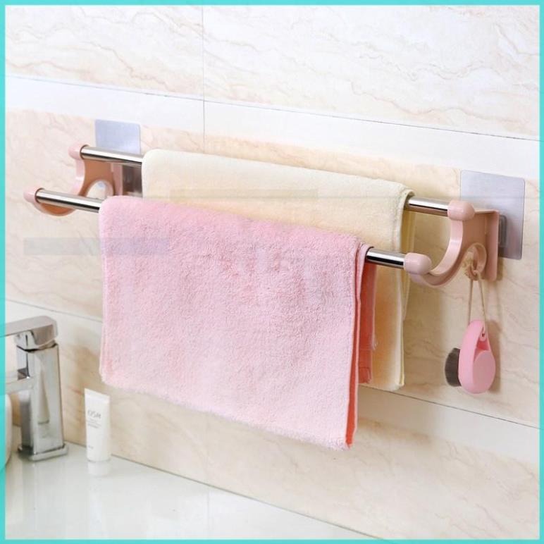 Kệ vắt khăn 2 thanh inox Dính tường siêu chắc-kệ treo khăn 2 tầng tiện lợi dán tường