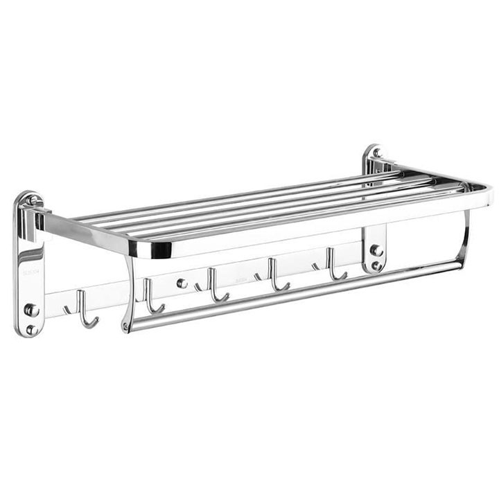 Giá gồm nhiều thanh ngang được kết cấu hợp lý & cực kỳ chắc chắn, bạn có thể để quần áo, phụ kiện tắm trên kệ & treo vắt khăn bên dưới thật gọn gàng & tiện lợi khi sử dụng.
