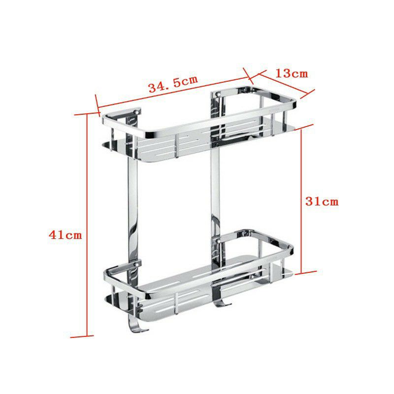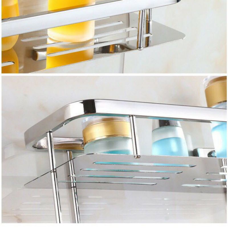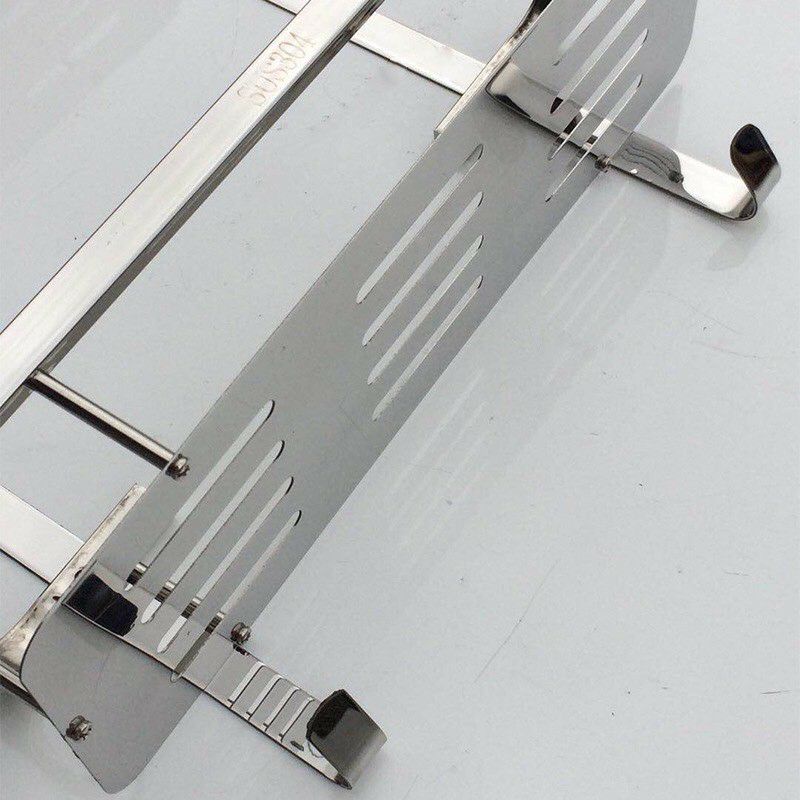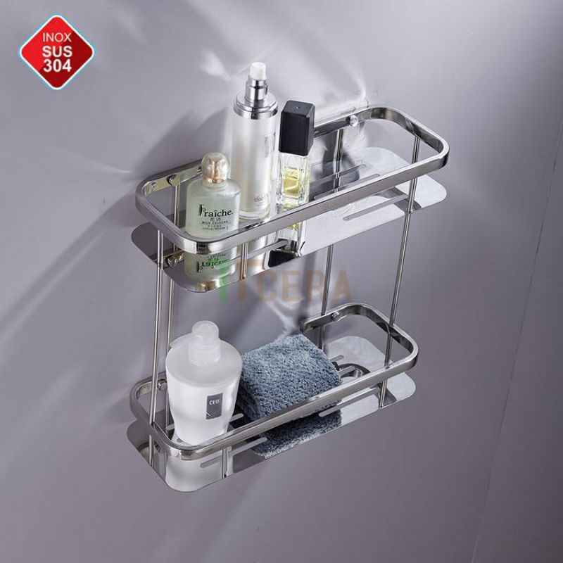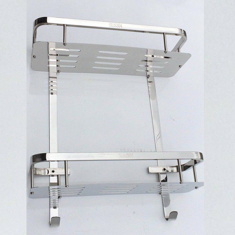 Giới thiệu Kệ vuông nhà tắm hai tầng có móc inox sus 304 sáng bóng