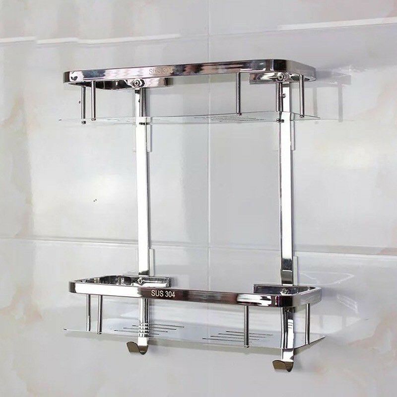 Nhà cửa & Đời sống > Đồ dùng phòng tắm > Kệ để đồ phòng tắm || Kệ vuông nhà tắm hai tầng có móc inox sus 304 sáng bóngCòn hàng