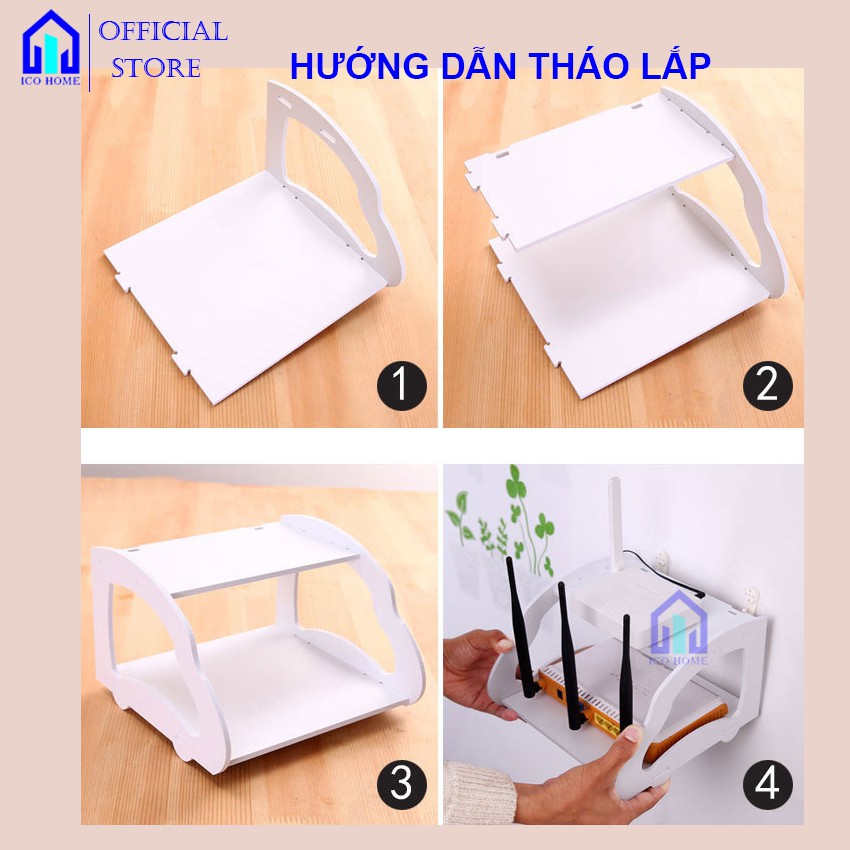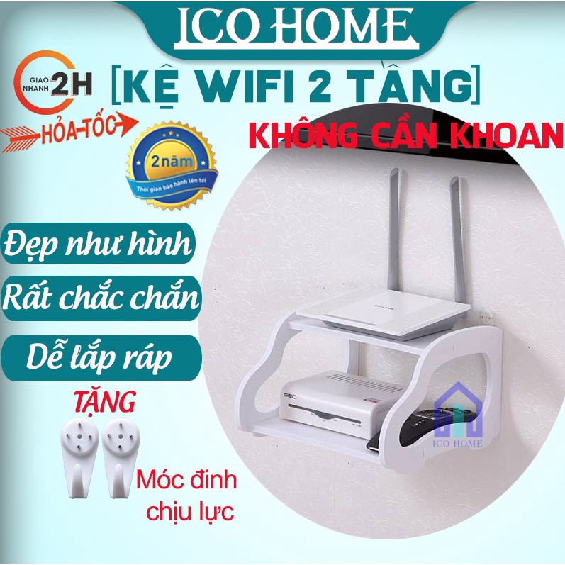 Kệ wifi treo tường 2 tầng KHÔNG CẦN KHOAN nhỏ gọn thông minh tiện lợi- ICO HOME