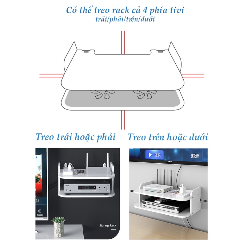 Khu vực để tivi, phòng khách của gia đình từ nay sẽ trở nên gọn gàng và sang trọng hơn hẳn với chiếc kệ VHR12 màu trắng này nhé!Kệ KW12 dùng để router wifi, đầu thu kỹ thuật số, bộ giải mã tivi, remote, điện thoại.., . Kệ được thiết kế thông minh có chừa khe đi dây ở cả 4 cạnh nên có thể treo kệ ở cả 4 phía của tivi đều được, đồng thời các loại dây tín hiệu, dây điện sẽ được sắp xếp 1 cách gọn gàng và khoa học hơn khi được luồn qua các khe cáp này.