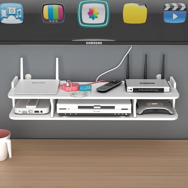 Nhà cửa & Đời sống > Nội thất > Kệ & Giá || Kệ wifi treo tường, kệ để đầu thu 2 tầng VHR12 bằng gỗ Smartboard màu trắng sang trọng không cần khoan tườngCòn hàng