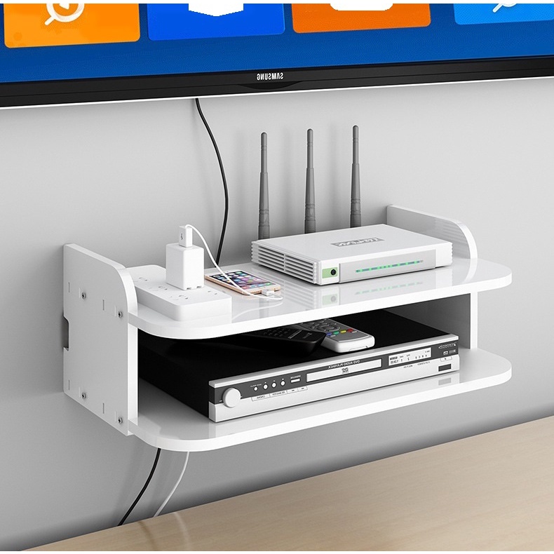Nhà cửa & Đời sống > Nội thất > Kệ & Giá || Kệ wifi treo tường, kệ để đầu thu 2 tầng KW12 bằng gỗ Smartboard màu trắng sang trọng - Đầy đủ phụ kiện treo kèm theoCòn hàng