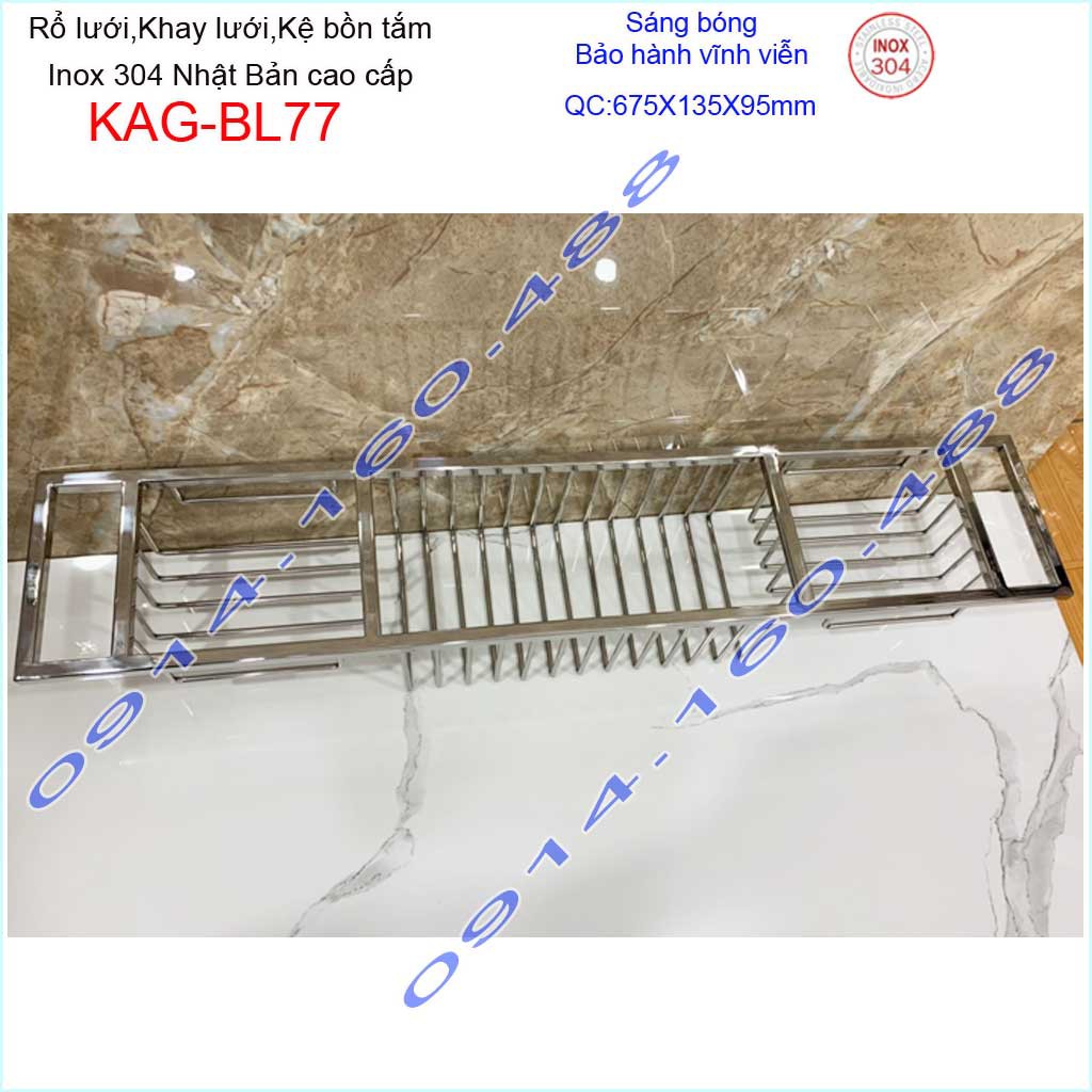 Kệ xà phòng bồn tắm nằm KAG-BL77, kệ xà phòng cho bồn tắm massage cao cấp inox Kace SUS304 Nhật
