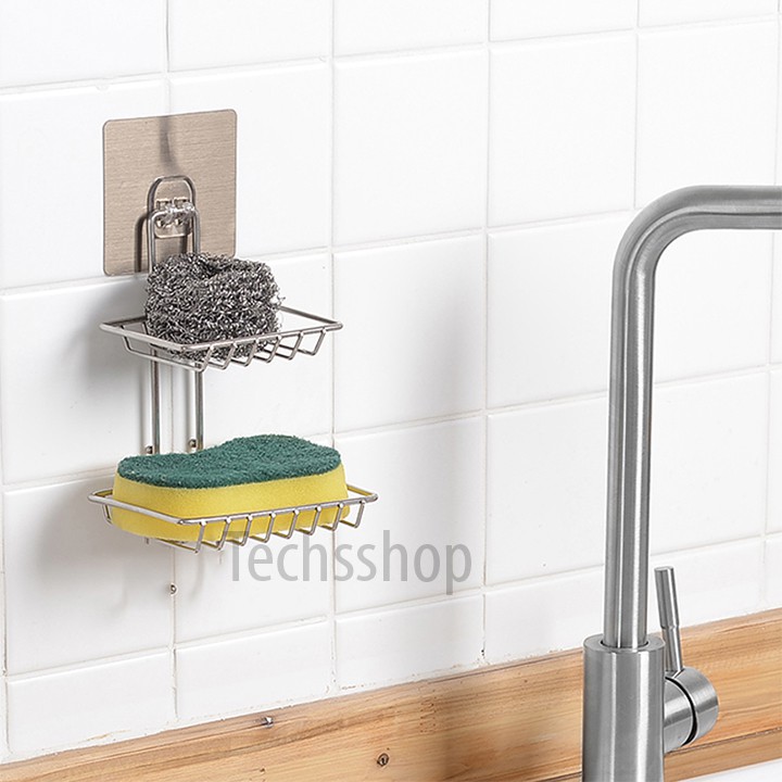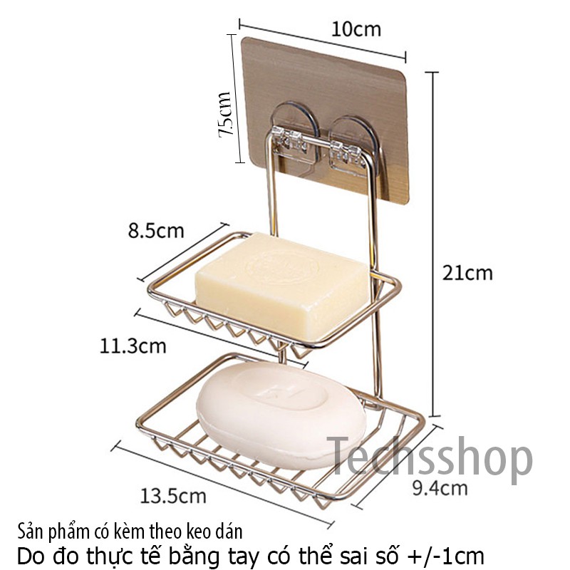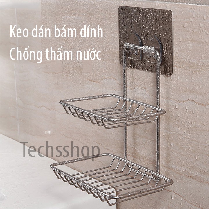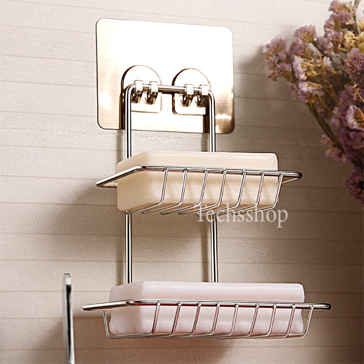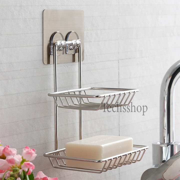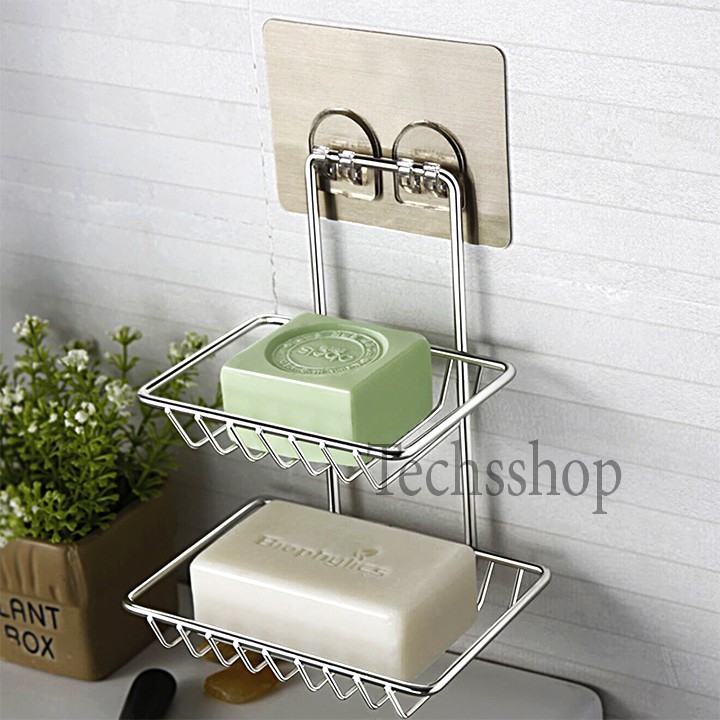Techsshop giới thiệu đến quý khách một kệ xà phòng inox 2 tầng dán tường tiện lợi keo dán bám dính tốt không cần khoan bắt vít, sử dụng trong nhà tắm và nhà bếp1 Thông tin sản phẩm