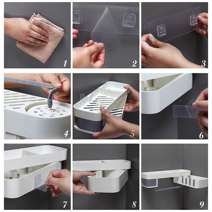 Kệ xoay dán tường đa năng- Kệ thiết kế thích hợp đựng vật dụng nhà tắm, nhà bếp, đồ dùng gia đình….