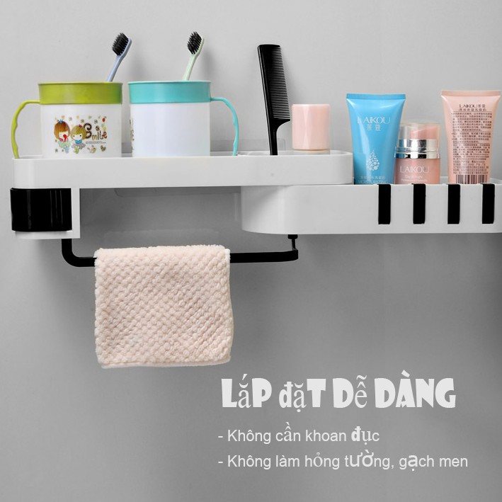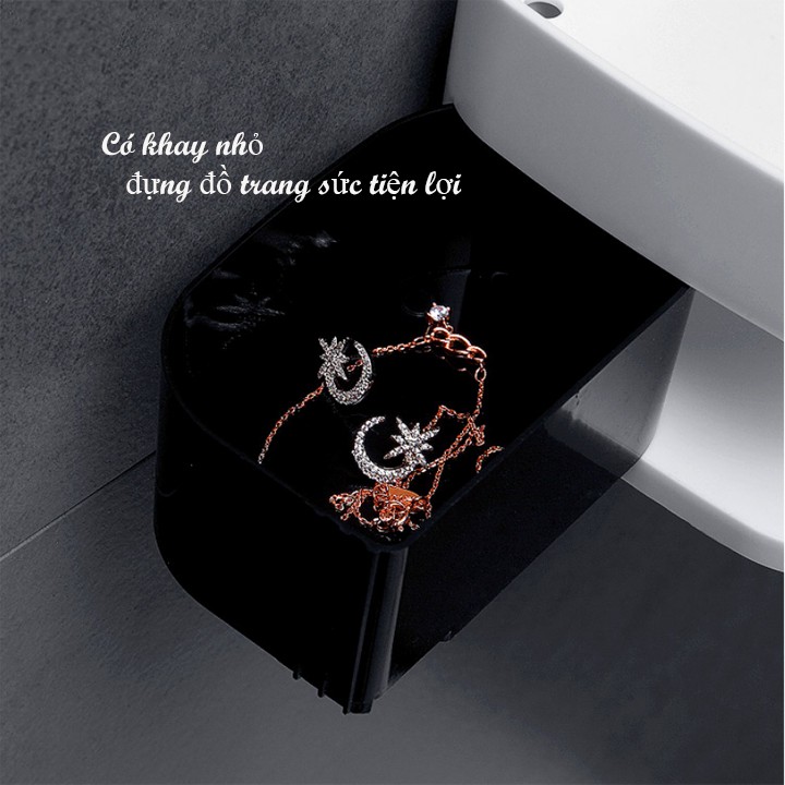 - Thiết kế hộp nhỏ để các vật dụng li ti siêu tiện dụng, có thanh ngang có thể treo khăn tắm.