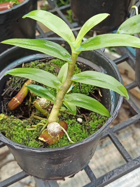 1 mầm (1 kei) giống lan Trầm rồng đỏ ươm từ thân già.- Kei năm 2 đang đi ngọn rất cứng cáp, phát triển khoẻ mạnh