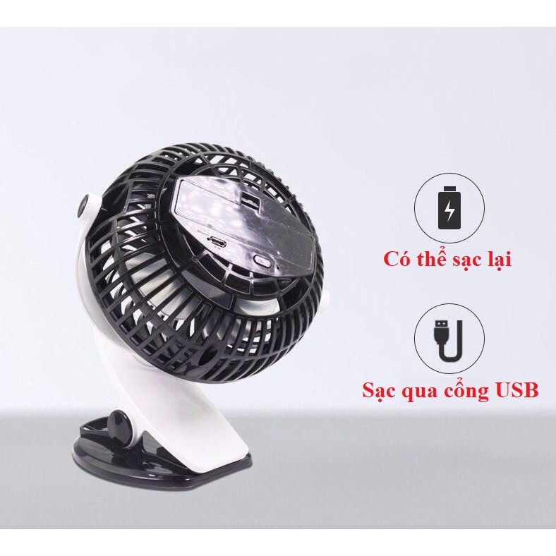 KÈM 1 PIN Quạt Sạc Pin Tích Điện F168 Chân Kẹp Bàn Kẹp Xe Đẩy Xoay 720 Độ, 3 Tốc Độ Gió Màu Sắc Đa Dạng, DÙNG An Toàn