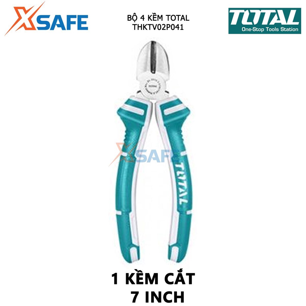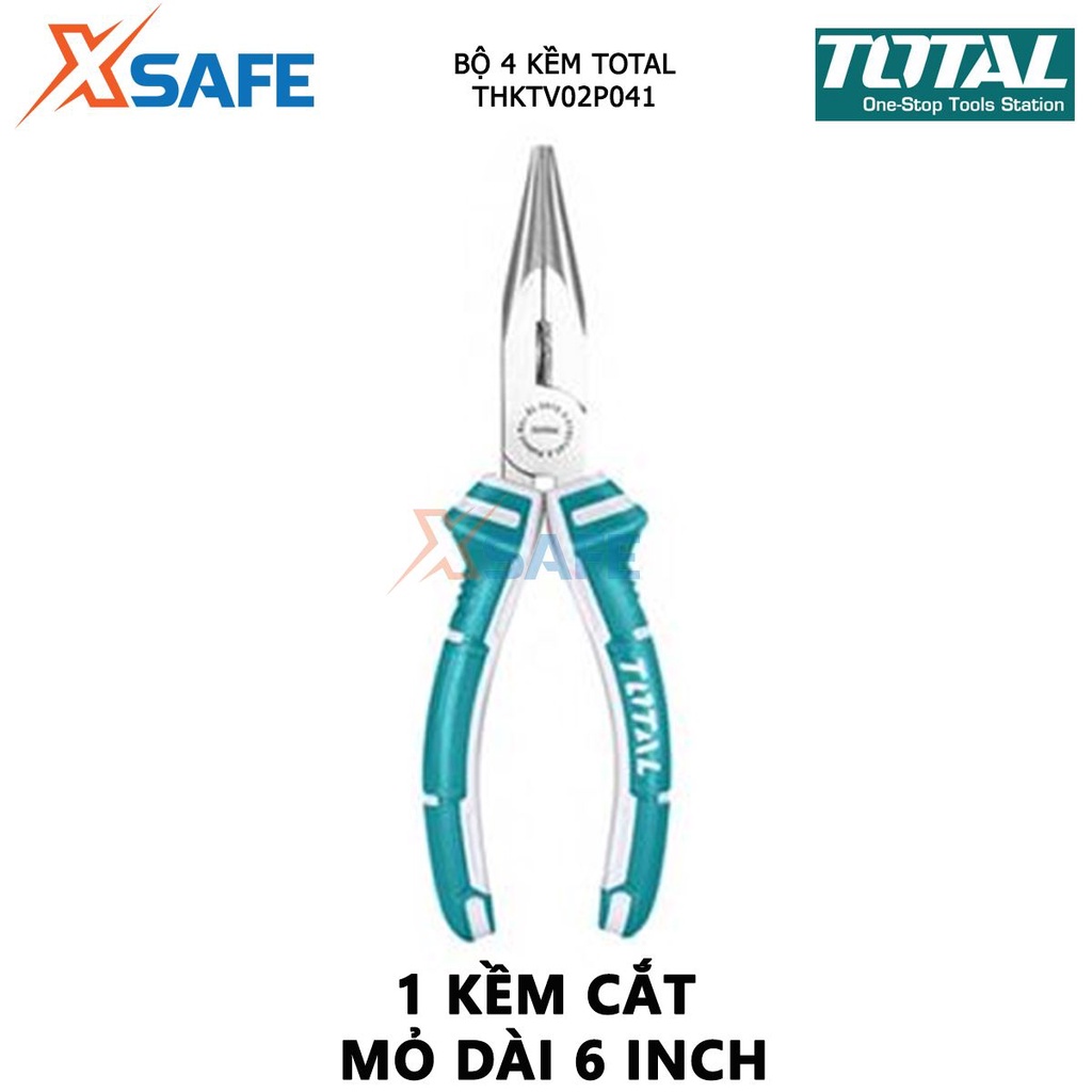 Bộ kềm 4 món TOTAL THKTV02P041 bộ 4 kìm bao gồm 1 kềm răng 8 inch, 1 kềm cắt 7 inch,1 kềm cắt mỏ dài 6 inch, 1 kềm mỏ