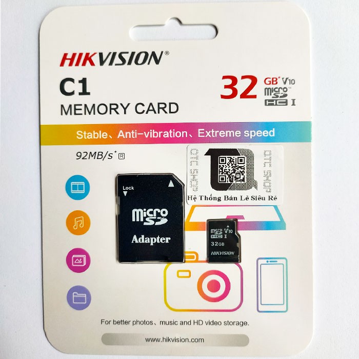 Điện Thoại & Phụ Kiện > Phụ kiện > Thẻ nhớ || (Kèm Adapter)- Thẻ Nhớ HIKVISION 32GB/64GB/Kèm Adapter 92MB/S - Bảo hành 60 Tháng 1 đổi 1 - Hàng Chính HãngCòn hàng