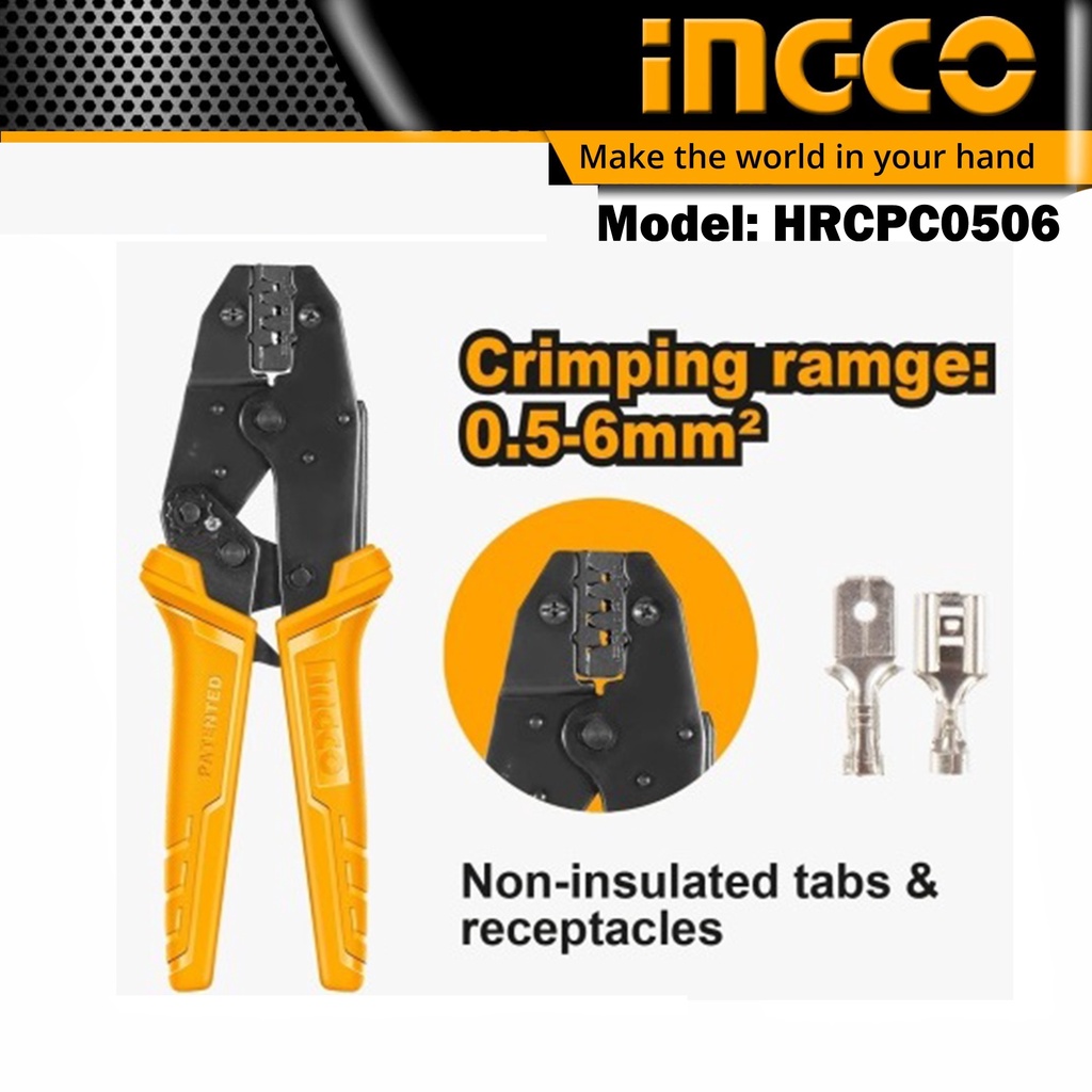 Nhà cửa & Đời sống > Dụng cụ & Thiết bị tiện ích > Dụng cụ > Kìm || Kềm bấm cos dây điện 0.5-6mm2 INGCO HRCPC0506Còn hàng