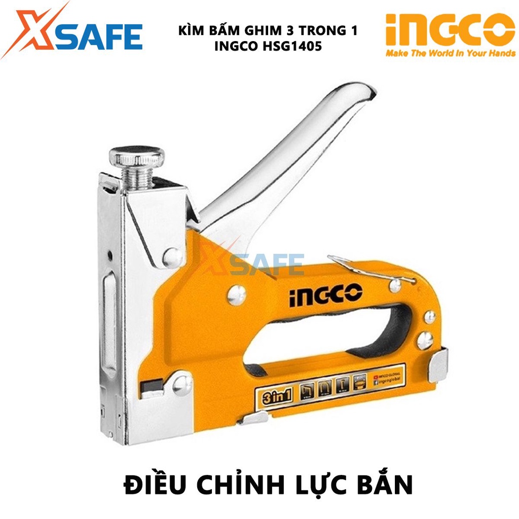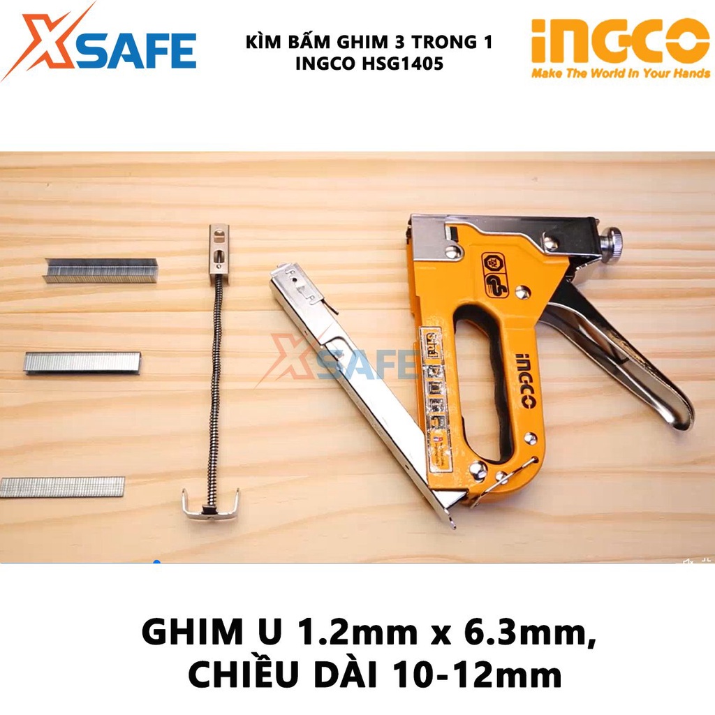 Giới thiệu Kềm bấm ghim đa năng INGCO HSG1405 Kìm bấm ghim 3 trong 1 kèm ghim thẳng, ghim U, ghim đinh - Chỉnh hãng [XSAFE]