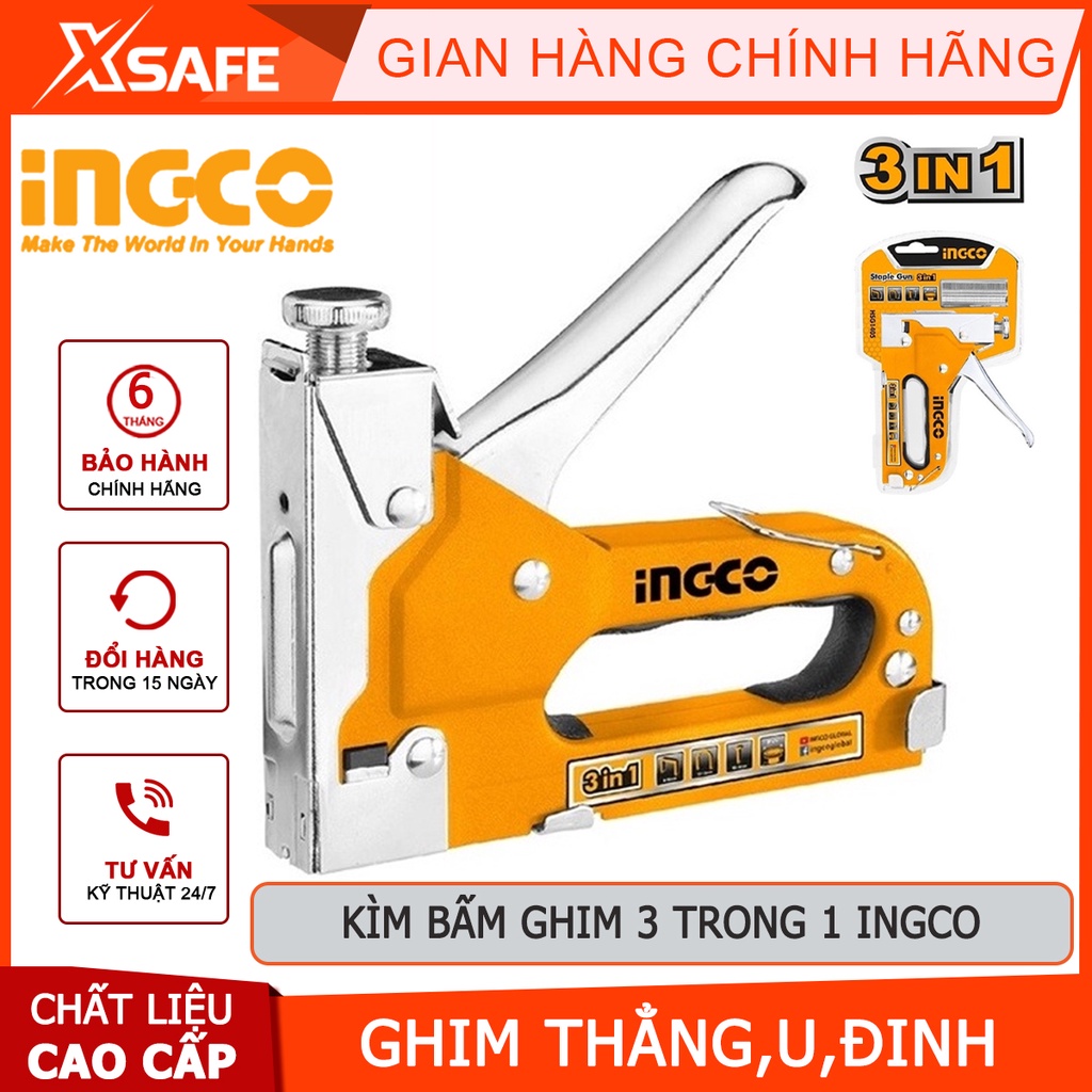 Nhà cửa & Đời sống > Dụng cụ & Thiết bị tiện ích > Dụng cụ > Kìm || Kềm bấm ghim đa năng INGCO HSG1405 Kìm bấm ghim 3 trong 1 kèm ghim thẳng, ghim U, ghim đinh - Chỉnh hãng [XSAFE]Còn hàng