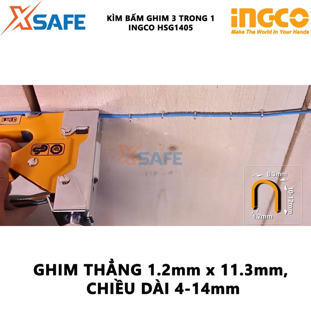 Kềm bấm ghim đa năng INGCO HSG1405 Kìm bấm ghim 3 trong 1 kèm ghim thẳng, ghim U, ghim đinh - Chỉnh hãng [XSAFE]