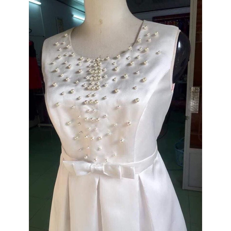 5 bịch hạt trai trắng kem 5 size là 4mm,5mm,6mm,8mm và 10mm giá 150k