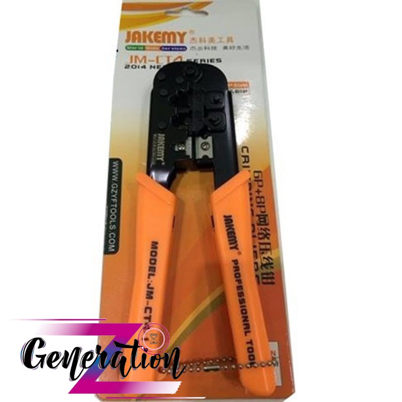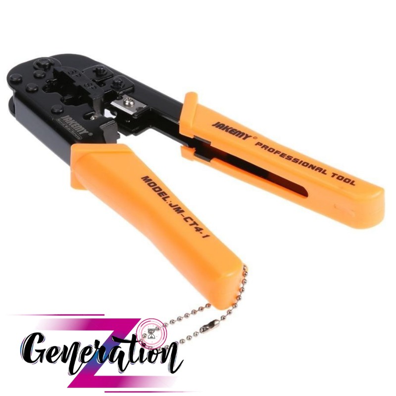 Kềm Jakemy CT4-1 là kềm bấm đầu mạng và tuốt dây mạng của hãng Jakemy - công ty nổi danh trong lĩnh vực thiết kế, sản xuất dụng cụ kỹ thuật, 1 công cụ không thể thiếu, tiện lợi dành cho kỹ thuật viên tin học viễn thông trong công việc lắp đặt mạng và điện thoại bạn tại nhà, công ty, trường học, công ty.
