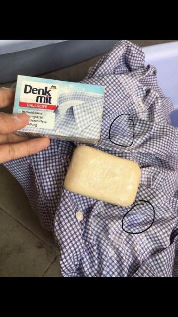 -> Chỉ cần chà miếng xà phòng này vào cổ áo, nách hoặc cổ tay áo trước khi cho đồ vào máy giặt đảm bảo sau khi giặt sẽ được cái áo sạch tinh tươm
