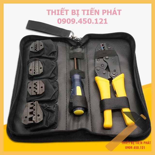 Bộ Kềm, Bộ Kìm 5 IN 1 Gồm 5 Đầu Bấm COS Đa Năng Bằng Thép - Niken Crom Cao Cấp (Tặng Kèm Tua Vít + Túi Đựng Vải Dù)