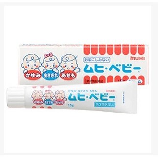 Kem bôi muỗi Muhi baby 3in1 tuýp 15g, hộp màu đỏ có hình 3 em bé : ngoài công dụng chính, sản phẩm có tác dụng cải thiện tình trạng rôm sảy, hăm tã do bé sử dụng tã lâu ngày, hoặc thay đổi thời tiết. Chất kem thấm nhanh không dính dớp, cung cấp độ ẩm cần thiết cho da.
