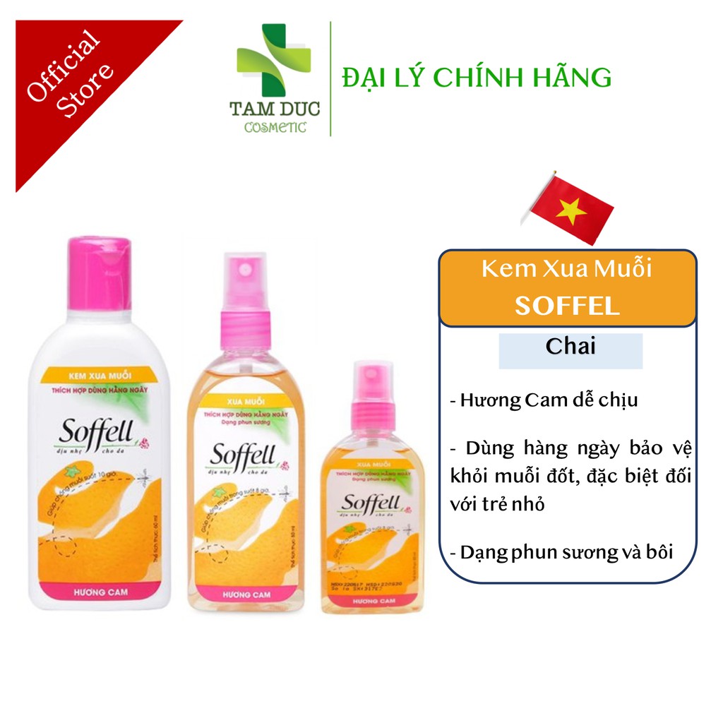 Giới thiệu Kem Bôi / Xịt chống muỗi / Xua Muỗi SOFFELL Hương hoa, cam [sofell, soffel, sofel]
