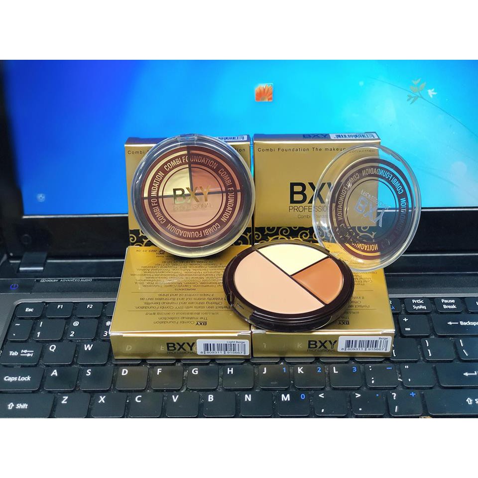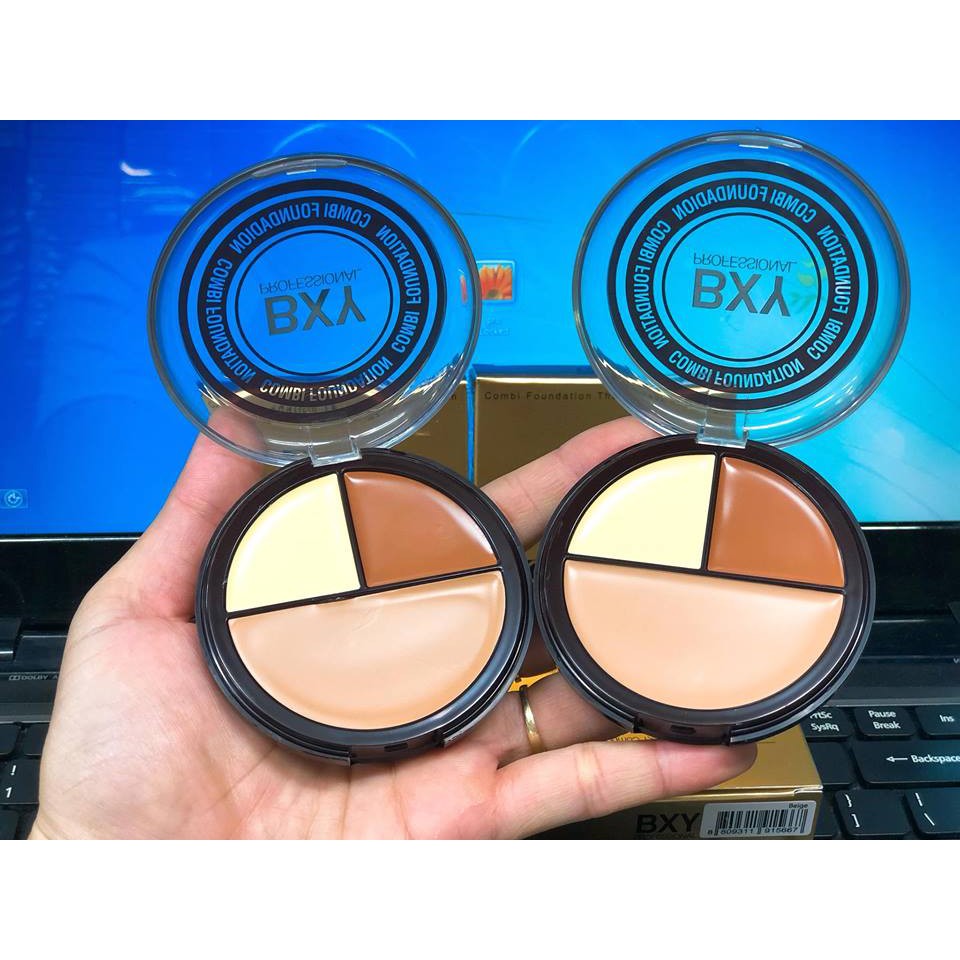 ➡ Kem che khuyết điểm/tạo khối/highlight 3 ngăn BXY Professional Combi Foundation là sự kết hợp độc đáo giữa 3 màu giúp che phủ khéo léo những khuyết điểm trên gương mặt đồng thời tạo điểm nhấn với những đường nét hài hoà, quyến rũ.