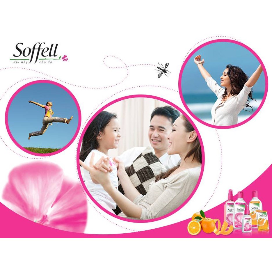 Sản phẩm chống muỗi Soffell với mùi hương dịu nhẹ, tươi mát làm cho muỗi tránh xa bạn mà vẫn giữ cho da mềm mại, ngăn ngừa các bệnh nguy hiểm do muỗi gây ra.CÔNG DỤNG SẢN PHẨM