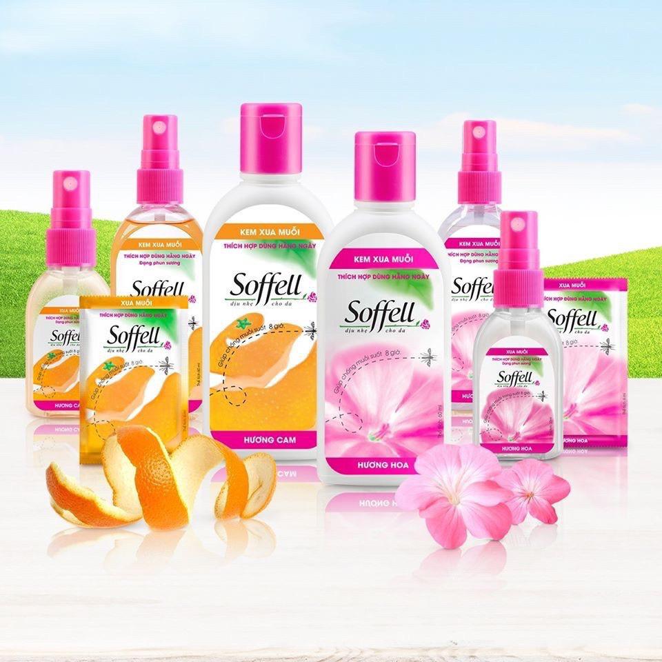 Sử dụng Soffell làm cho muỗi tránh xa bạn trong suốt thời gian 10 giờ mà vẫn giữ cho làn da mềm mại, Soffell giúp bạn phòng ngừa do muỗi gây ra.Hoạt chất chính: Diethyltoluamide 13%.
