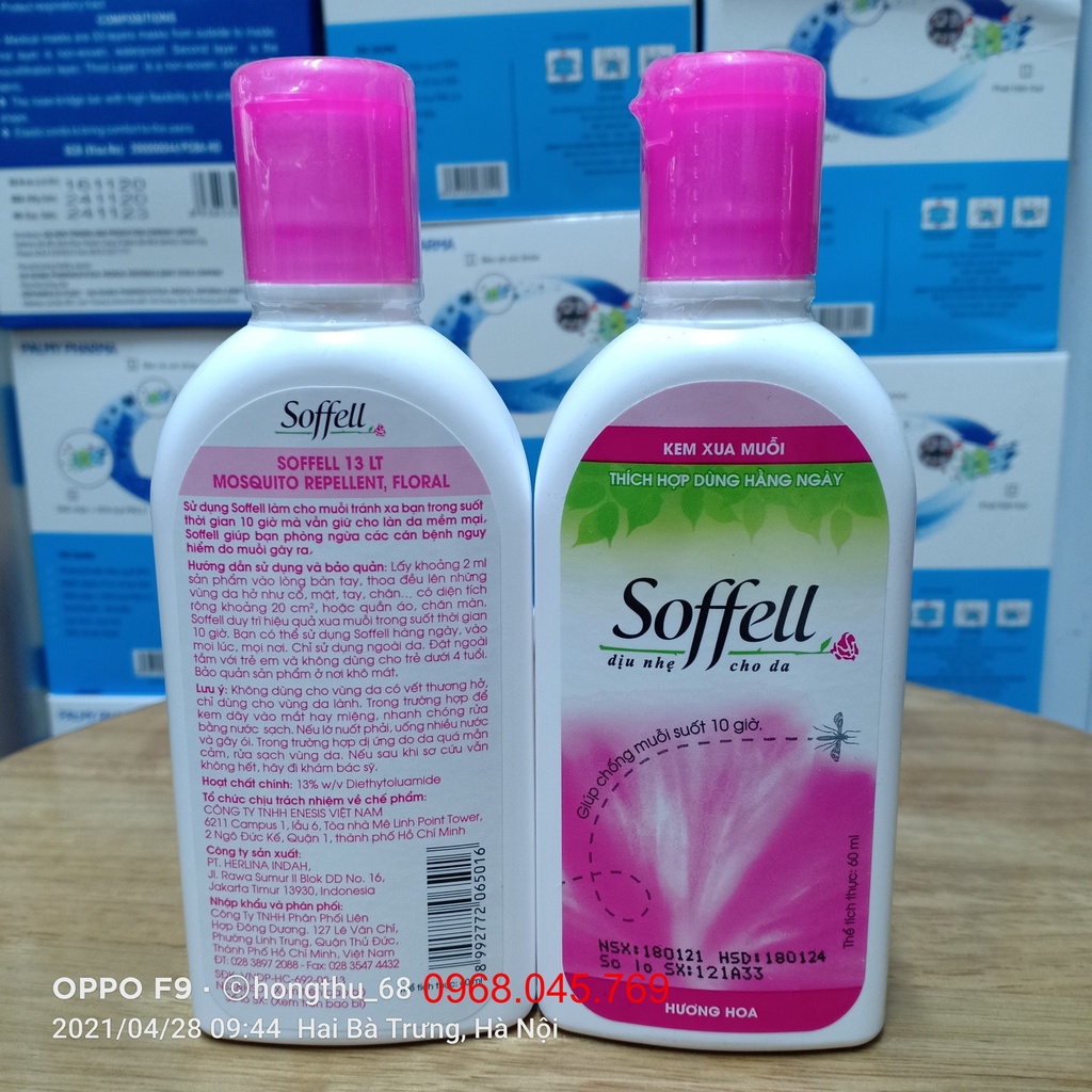 - Kem chống muỗi Soffell giúp hiệu quả chống muỗi trong suốt 10 giờ đồng hồ giữ cho làn da mềm mại, lưu hương hoa dịu dàng dễ chịu.