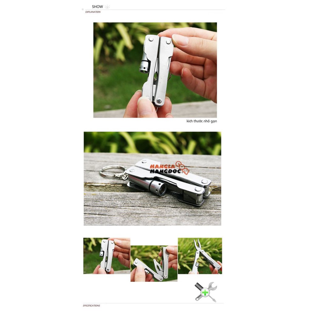Kềm đa năng 9 in 1 có đèn pin treo móc khóa tiện lợi