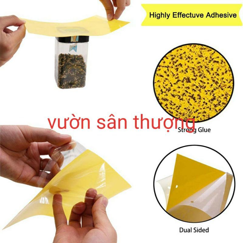 [ Kèm Dây Treo] Miếng Bẫy Dính Ruồi Vàng Và Các Loại Gây Hại Cho Cây 15*20Cm 1 Miếng, an toàn tuyệt đối cho người sử dụng.1 miếng có 2 mặt được tráng keo và rất thích hợp được dùng cho dàn phong lan hoặc vườn cây ăn quả, rau sạch khi bẫy ruồi ngoài môi trường mưa nắng và ẩm ướt thay đổi thường xuyên.
