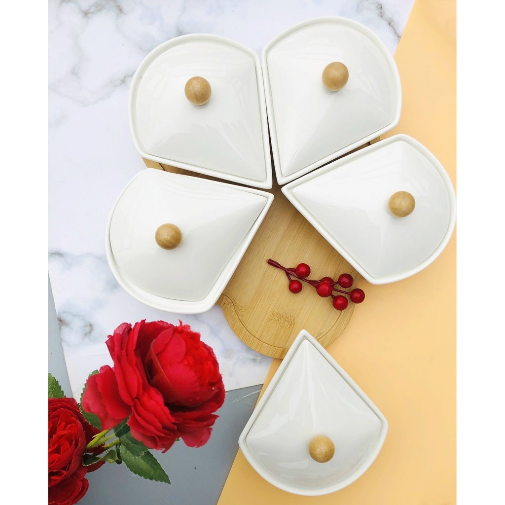 Sản phẩm bao gồm khay gỗ bát đựng bánh kẹo