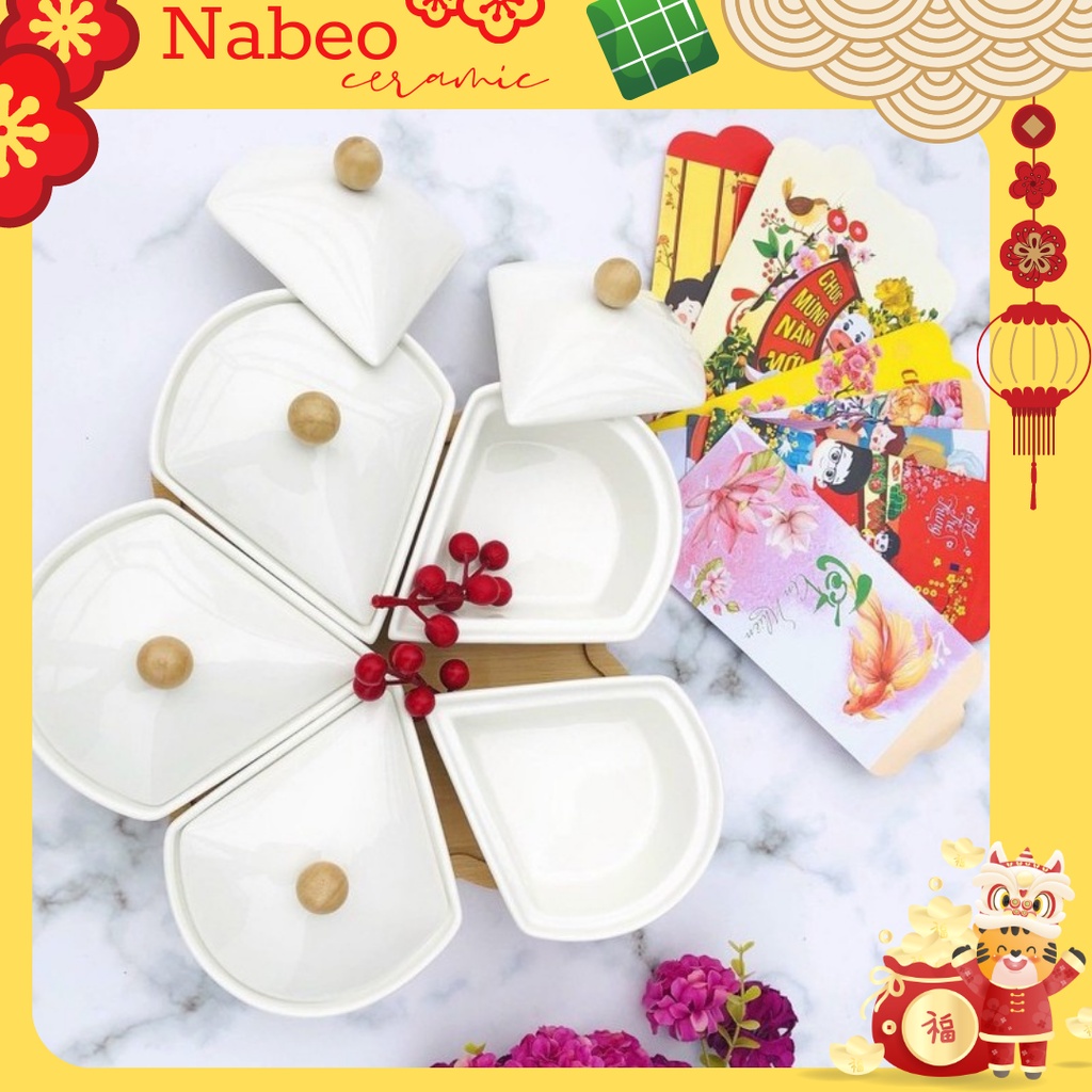 [Kèm đế gỗ] Khay Mứt Sứ Nhiều mẫu mã - Khay Đựng Bánh Kẹo, Hoa Qủa, Trang Trí Tết - Gốm Sứ Bát Tràng