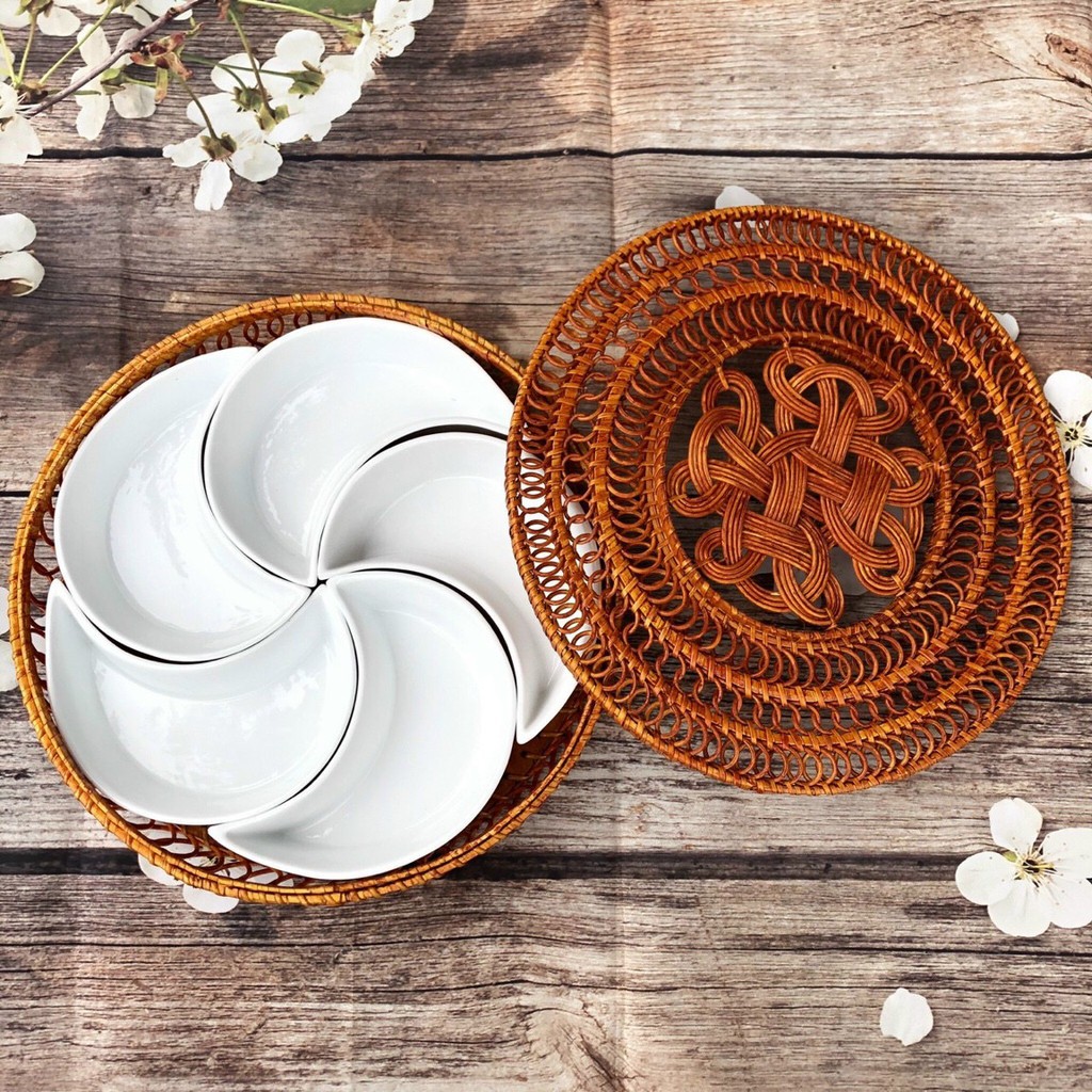 Nhà cửa & Đời sống > Bộ đồ bàn ăn > Khay, tấm lót bàn ăn || [Kèm đế gỗ] Khay Mứt Sứ Nhiều mẫu mã - Khay Đựng Bánh Kẹo, Hoa Qủa, Trang Trí Tết - Gốm Sứ Bát TràngCòn hàng