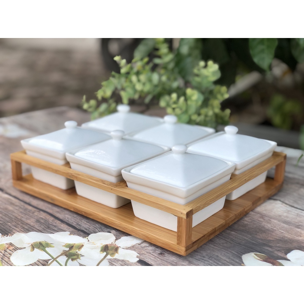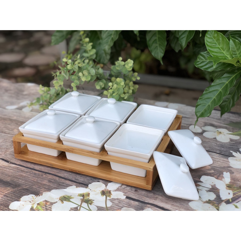 Nhà cửa & Đời sống > Bộ đồ bàn ăn > Khay, tấm lót bàn ăn || [Kèm đế gỗ] Khay Mứt Tết Men Trắng- Khay Đựng Bánh Kẹo, Hoa Qủa, Trang Trí Tết - Gốm Sứ Bát TràngCòn hàng