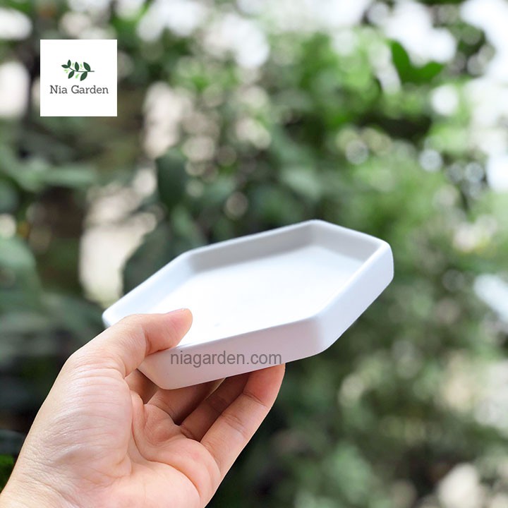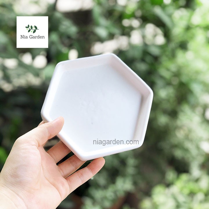 Giới thiệu (Kèm dĩa) Chậu lục giác nhám dĩa rời trồng cây mini để bàn Nia Garden N1