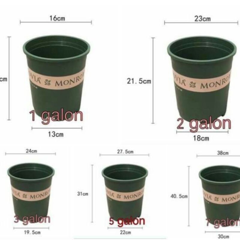 - Chậu trồng hoa monrovia 7 galon: kích thước: miệng chậu 38cm * chiều cao 40.5 cm.