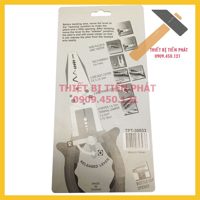 Kềm Điện Đa Năng, Kìm Điện Đa Năng 8'' (200mm) TOP Mã TPT-30033 Chế Tạo Bởi Thép CRV.- Model: TPT-30033