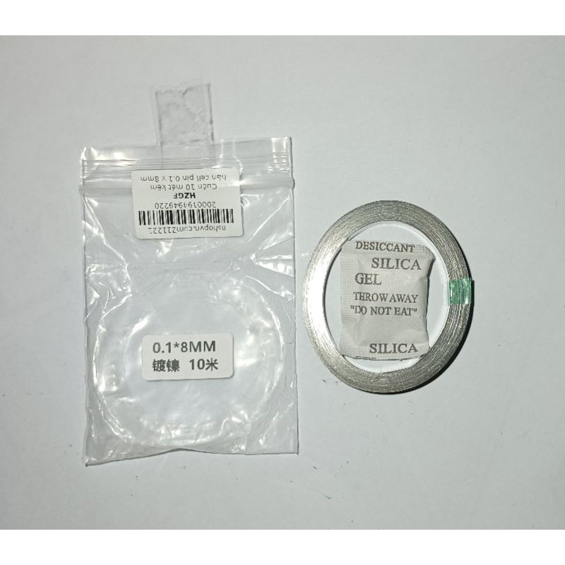 - Kẽm đơn dày 0.1mm, rộng 8mm, được đóng gói sẵn thành cuộn 10met- kẽm loại tốt, có túi hút ẩm trong mỗi túi sản phẩm