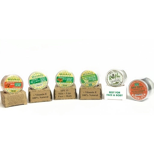 Dầu dừa Ruth: dưỡng ẩm da, chống vi khuẩn, chống lão hóa cho da, làm cho da căng mịn, làm nhỏ lỗ chân lông…Sáp ong nguyên chất: giúp nhanh lành vết thương, dưỡng ẩm da, chống lão hóa cho daVitamin E: dưỡng ẩm da, giúp da chống lão hóaSPF 15: bảo vệ da dưới ánh nắng mặt trờiTinh dầu sả chanh: ngăn ngừa muỗi và côn trùng.