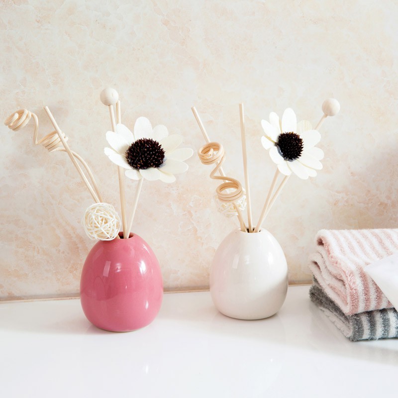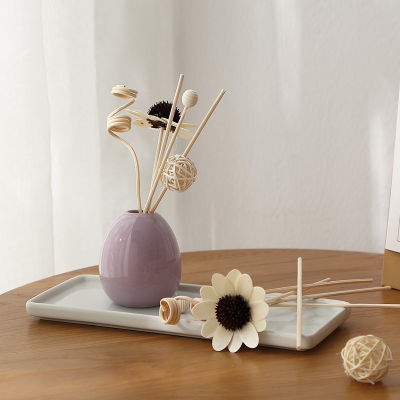 Bộ sản phẩm bao gồm: Lọ thủy tinh cao cấp; Hoa gỗ, que mây. Bộ sản phẩm tính năng 2 trong một: vừa khuếch tán hương thơm tinh dầu vừa là đồ trang trí làm đẹp không gian.