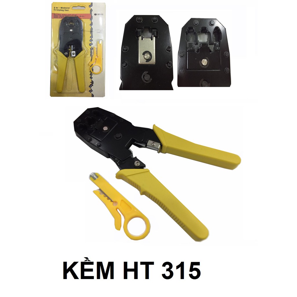 Kềm HT 315 ( vàng )Kềm bấm mạng loại rẻ HT 315 màu vàng kèm 1 kềm nhấn cáp mini